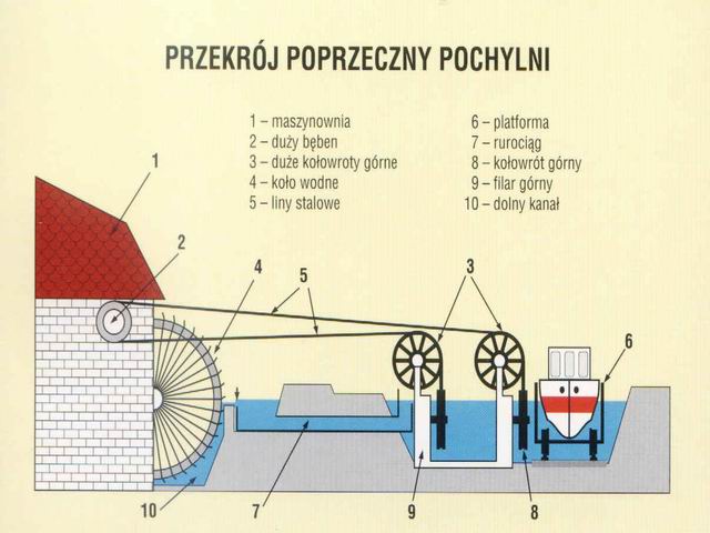 długość odcinka lądowego na pochylni 0,45km. Dalej przekop prowadzący