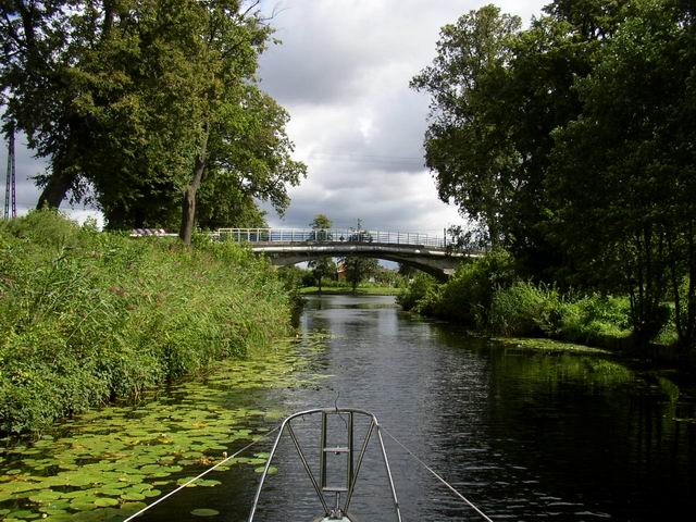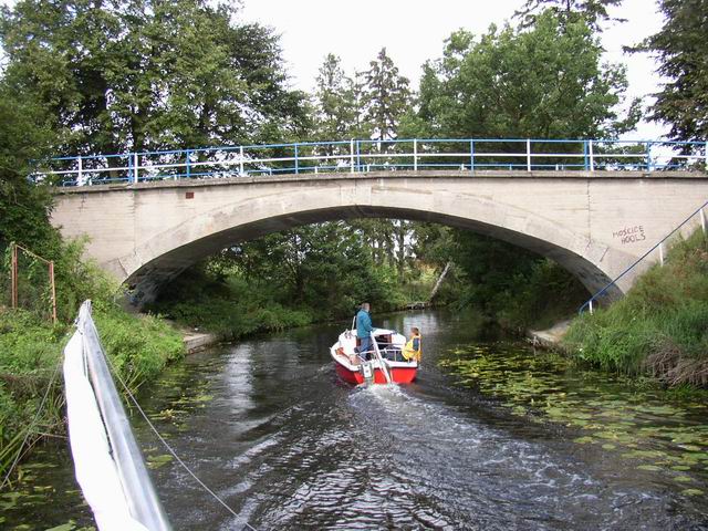 Most drogowy na trasie Miłomłyn - Zalewo. Kanał (przekop) jest o kilka metrów węższy od Kanału Elbląskiego. Po obu brzegach gęsty szpaler olch, świerków i malowniczych wierzb. Niektóre drzewa, zwłaszcza świerki, pamiętają czasy budowy kanału, gdyż wówczas zostały zasadzone olchy i wierzby są młodsze. Wody przybrzeżne porastają nenufary i grążele, których białe i żółte kwiaty stanowią duże urozmaicenie szlaku, woda czysta, widoczna na dnie roślinności. |