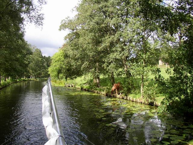 Śluza komorowa* Zielona. Długość komory 35m, szerokość wrót 3,55m, różnica poziomów wody 1,4m . głęb. 1,6 - 1,7m. W odległości ok. 1km na zachód (z lewej) wieś Liwa, ok. 700 mieszkańców. Istniejąca już w 1686r. |
