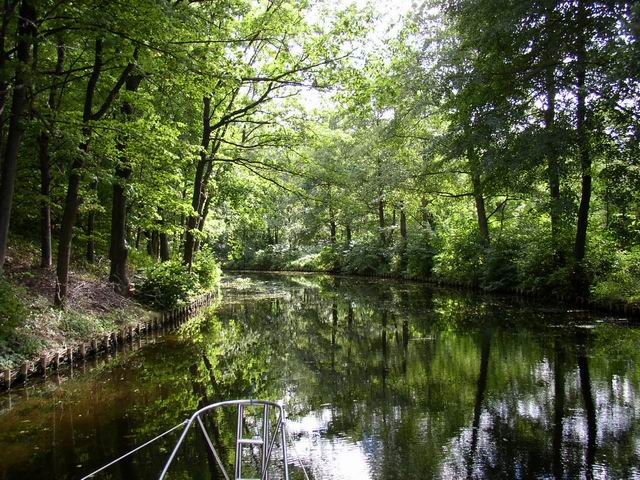 Jezioro Karnickie pow. 123,3ha, dług. 2,5km. szer. 0,85km. głęb. 3,1m. W trakcie budowy kanału w poprzek jeziora, którego lustro wody leży o 2 m niżej od lustra wody jeziora Jeziorak, usypano nasyp w którym wykonano przekop (kanał). W celu wyrównania poziomu wody o obu częściach przedzielonego jeziora umieszczono w nasypie rury spełniające tę samą rolę, co w naczyniach połączonych. Długość kanału w nasypie 484m. Dla umocnienia skarp kanału w nasypie, obsadzono je gęsta roślinnością. Rosnące drzewa tworzą szpaler tak, że płynący kanałem w nasypie nie widać tego rozwiązania. |