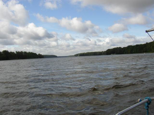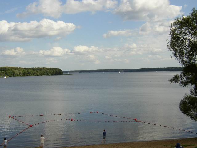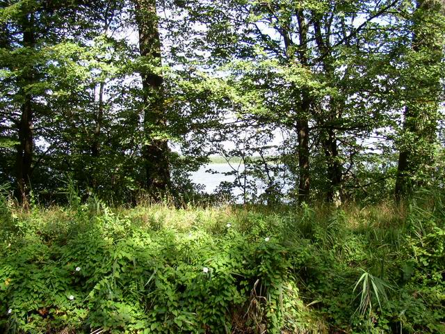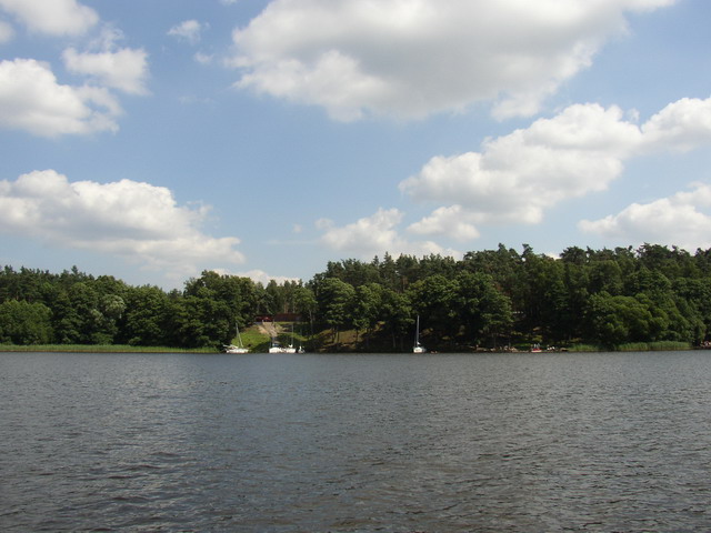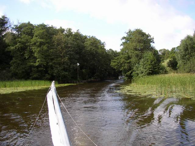 Początek największego jeziora Pojezierza lławskiego, trzeciego co do wielkości jeziora regionu (po Śniardwach i Marach) - Jeziorak pow. z wyspami 3459,9ha. dług. 27,45km (najdłuższe Jezioro w Polsce), szer. 2,35km, głęb. 12m. Linia brzegowa silnie rozwinięta, na jeziorze 16 wysp i wysepek o łącznej powierzchni 246,5ha. Wyspa Wielka Żuława, położona w południowej części jeziora (Wielki Ostrów), jest największą wyspą śródlądową w Polsce (86ha) połączoną z lądem za pomocą promu. Za pomocą cieśnin lub krótkich strug Jeziorak łączy się z jeziorami: Płaskim (629,4ha), Rucewo Wielkie (218,8 ha), Rucewo Małe (167,5ha), Iławskim (156,5ha). Łabędˇ (309,4ha) i wspomnianym wyżej jeziora Dauby. Z leżącym na północy jeziora Ewingi łączy dwukilometrowy kanał, będący odgałęzieniem szlaku do Zalewa. Brzeg zach. Jezioraka na całej długości porasta mieszany las, wschodni tylko w części środkowej. |