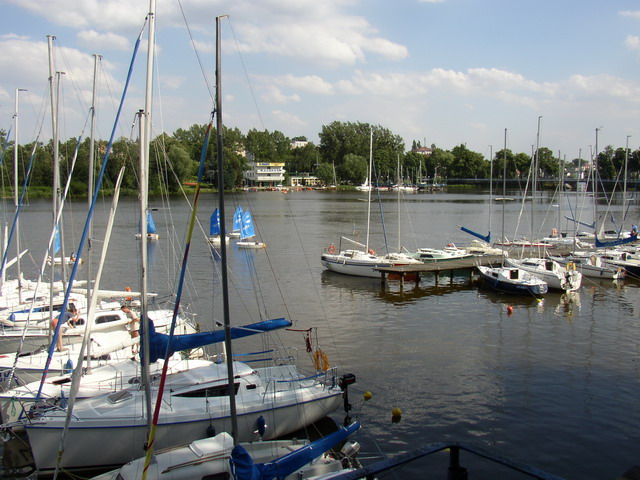 Po lewej kluby żeglarskie (czarter jachtów, wypożyczalnia sprzętu wodnego) |