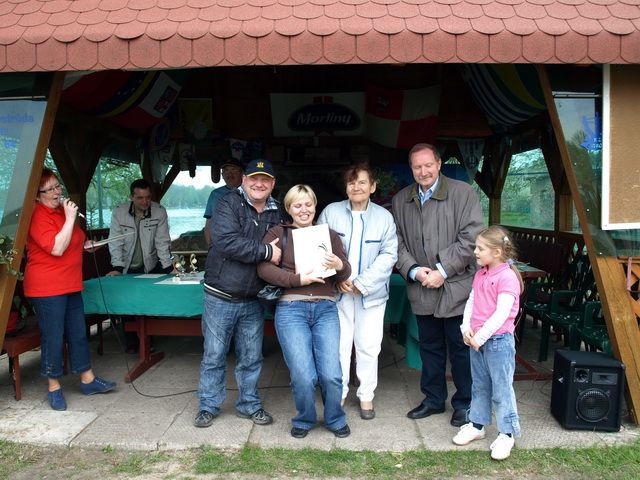 gdyż Pani Kapitan w maju tego roku obchodzi złotą 50 rocznicę ślubu. Zaszczycił nas również swoja wizyta Burmistrz Miasta Ostródy Jan Nosewicz. Regaty zostały rozegrane w dwóch kategoriach seniorzy i juniorzy. Na starcie stanęło 11 zawodników i przy bezwietrznej ale bardzo pięknej pogodzie |